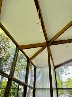 The interior is like a glass greenhouse, filled with sunlight, and the outdoor terrace feels like you’re in the jungle.