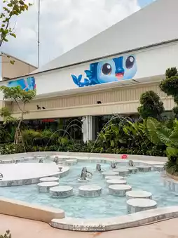 For those who go as a family, but not everyone can play There are places to sit and wait, both near the pool, the food court, and the air-conditioned rooms upstairs.