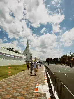 The atmosphere of walking around Wat Phra Kaew in the afternoon is filled with tranquility. The soft afternoon sunlight shines on the ordination hall and the golden pagoda, reflecting the sparkling light from the sculptures and stained glass patterns on the temple walls beautifully.