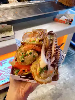 The oversized octopus is very eye-catching! The texture is crispy on the outside and chewy on the inside, which is different from the takoyaki in Taiwan. It is seasoned with Thai sauce, which is not only photo-friendly but also delicious! In addition to the large octopus, the fillings also include shrimp, crab legs, oysters, etc. I personally think the portion is not small, so I suggest sharing it with friends so that you can eat more delicious food~~