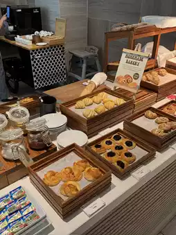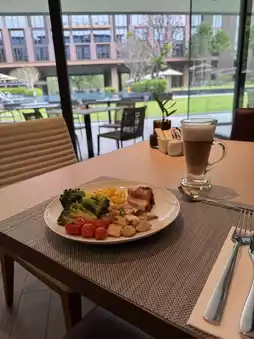 Dining options include a buffet restaurant and an American-style eatery (🍔). Although there’s no lounge, elite members can reportedly enjoy food and drinks at the café (please confirm this).