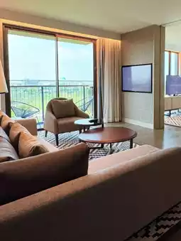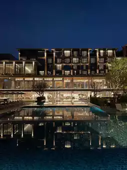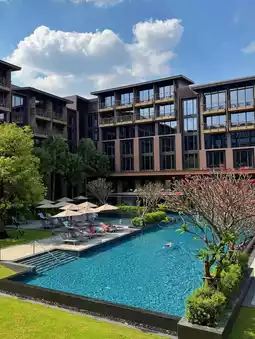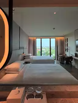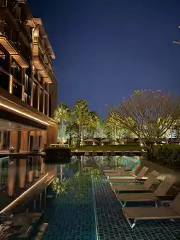 Despite its proximity to the airport, the hotel offers a tranquil, tropical resort-like atmosphere, creating a relaxing paradise.