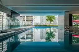 On the 8th floor, there's an outdoor swimming pool. The gym is very cool with plenty of equipment. What makes this hotel unique is its Japanese-style hot spring bath, which is quite rare in Bangkok.