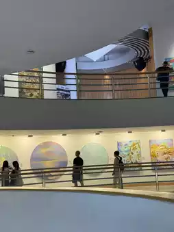 The center showcases a rotating selection of artworks across various mediums. The building itself has a unique design—you can easily walk in a circular path from the bottom to the top.