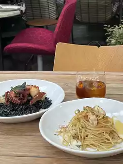 You can enjoy not only brunch menus but also a variety of high-quality dishes like pizza, pasta, and grilled items, just like a restaurant. Fresh ingredients and stylish plating show that this is more than just a café. 🍕🍝