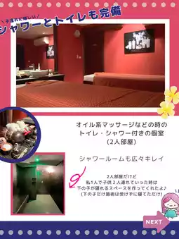 The first type is a private room with a bed, shower, and toilet, used for oil massages and body packs.