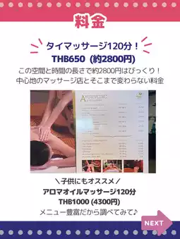▶︎ 120 minutes for THB 1000 (about 4300 yen), an unthinkable price in Japan♪