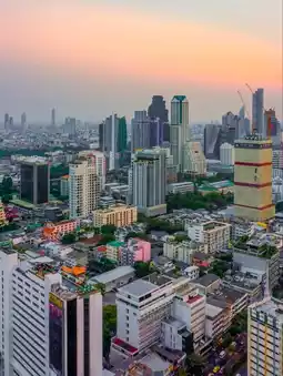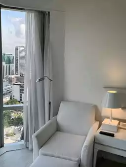 Chic, minimalist design with floor-to-ceiling windows offering sweeping views of the Bangkok skyline.
