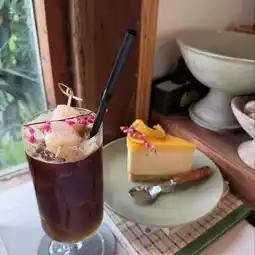 clay wood studio is a hidden gem in Srinakarin that feels like being in Chiang Mai, with a very shady and peaceful café. This adorable studio café has a great atmosphere and also offers ceramic wheel-throwing workshops. Its distinctive feature is a simple two-story wooden house surrounded by lush greenery, creating a very relaxing vibe. The drink menu includes both coffee and non-coffee options, all in one place, and the flavors are delicious too. Definitely not to be missed!