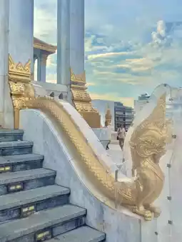 Besides its magnificent beauty, this beautiful temple in Bangkok also has a long history, making it a great place for learning. If anyone wants to visit and pay respects, you can take the MRT subway to Hua Lamphong Station, exit at number 1, and walk to the temple. It takes about 10 minutes, and along the way, you can also enjoy the beautiful views of Bangkok.