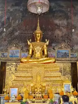 💢 Paying respects to Phra Phuttha Maha Chakkraphat at Wat Nang Nong Worawihan is a truly impressive experience. The principal Buddha image is beautifully distinguished by Sukhothai-style Buddhist art, adorned in imperial attire. It is enshrined in the ordination hall, which is exquisitely decorated with Thai-Chinese art from the reign of King Rama III, evoking a sense of peace and reverence when worshipping and making wishes. It is also believed that paying homage to Phra Phuttha Maha Chakkraphat brings good luck, prosperous trade, and success in one’s career, making it a highly recommended place to visit and pray.