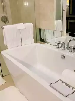Huge bathrooms with deep bathtubs, rainfall showers, and top-tier amenities ๐
