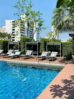 The hotel features 345 stylish rooms and suites with floor-to-ceiling windows offering stunning city views. Enjoy Sofitel’s signature MyBed, Bose sound system, Balmain bath amenities, and a Nespresso machine. The interiors reflect a classy blend of French sophistication and Thai elegance.
