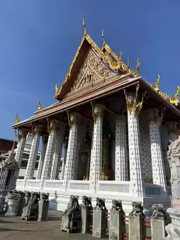 The temple you arrive at after crossing the river is truly magnificent, worthy of being called one of Bangkok's three great temples.