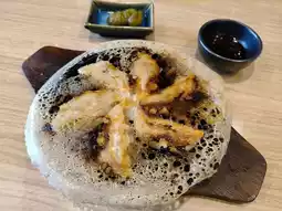 🥟 Teppan Gyoza – thin crispy-skinned gyoza served on a hot plate, juicy with every bite, crispy outside and tender inside.