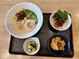 A complete Japanese set meal that lets you experience the original taste, including Mini Kakuni Don, tender braised pork on rice; Mini Goma Q, crunchy pickled sesame cucumbers; Mini Spicy Cabbage, richly flavored cabbage.