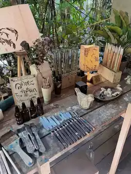 Highly recommend everyone to try Taiban Cafe, a cafe that feels just like home. Friends invited me to sit and draw, sip coffee, or enjoy homemade-style food. It’s truly a one-stop creative haven. Taiban Cafe (TAIBAN) is located in the Hua Lamphong area, near MRT Exit 3, very convenient to get to. The cafe is in a quiet alley but easy to find. The atmosphere is warm, like a friend’s home. The decor combines minimalism with loft style, offering both air-conditioned and cozy front garden seating. They also provide painting activities with colors, brushes, and canvases, perfect for chilling on a day off.