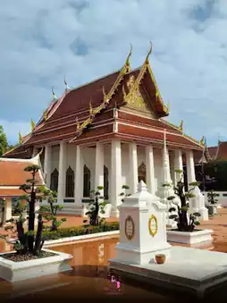 👏 Wat Nang Ratchaworawihan is an ancient and beautiful temple rich in history, located by Khlong Dan on the Thonburi side. It stands out with architecture that perfectly blends Thai and Chinese art. Inside the ordination hall is a beautiful principal Buddha image in the Mara Vichai posture, along with exquisite mural paintings that narrate Buddhist stories. Additionally, there are pagodas, antiques, and many sacred objects for worship and study. The atmosphere inside the temple is peaceful and shady, ideal for making merit, paying respects, and truly relaxing the mind.