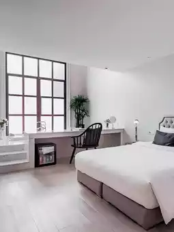 🏊♀️Facilities and Services: There is a rooftop pool surrounded by white loungers and greenery, perfect for photos. Additionally, the hotel provides 24-hour front desk service, luggage storage, and free parking. The overall decor is in an Instagram-worthy style, with a black, white, and gray color scheme, making it one of Bangkok’s popular influencer hotels. Room rates range from 700 to 800 THB, varying by season.