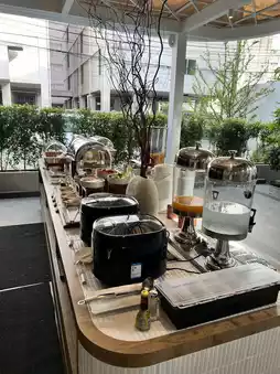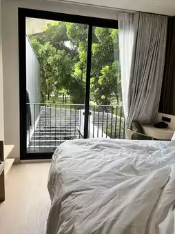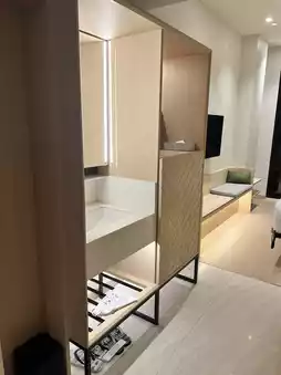 It’s near the Airport Rail Link Ratchaprarop station, but the surrounding area is currently under construction, and the road conditions are poor, so it will be tough if you’re dragging luggage! The hotel is brand new with modern facilities, the public areas have a stylish design, and the rooms are Japanese minimalist style. The mattress provides good support, medium firmness—very comfortable. Breakfast is a special offer at 150 THB, also minimalist style (not many dishes XD). There are also three rooms on the first floor with direct access to the pool 🎉