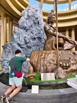 Worship the Shiva Lingam by pouring water around it 3 times clockwise, then sprinkle water. After that, touch the water and sprinkle it on your head 💦