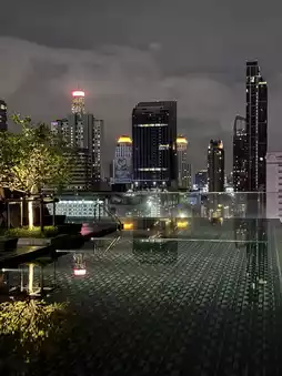 The infinity pool on the 18th floor of the hotel is the perfect spot to take in Bangkok’s skyline at a glance. During the day, enjoy clear skies and city views, and at night, experience the dazzling nightscape for a romantic atmosphere. The poolside bar offers a variety of drinks and light snacks. 🌇🍹