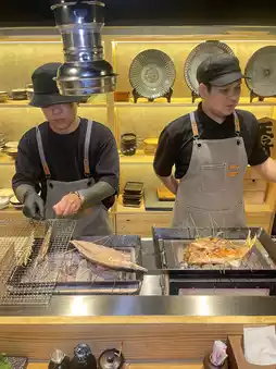 The oysters are very large, grilled to a fresh, bouncy texture, eaten with lemon. Mentaiko mushrooms are eaten with seaweed and roasted sesame seeds. The side dishes are excellent, perfectly balancing salty and sour flavors.