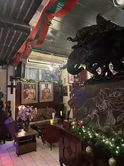 This place is a mix of bar and restaurant. The downstairs area is a bar with a DJ playing music and live singers. Upstairs is a chill zone with wine tables and a private room available for personal parties.