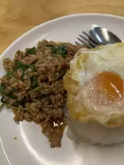 I ordered the classic basil pork with rice, and it was well executed — flavorful, fragrant, and exactly what I needed for a comforting local lunch. The interior was surprisingly interesting, with quirky Thai-style decorations that added charm to the laid-back space.