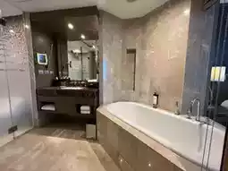 Our room was spacious, clean, and beautifully appointed. The bed was impressively large — even bigger than a standard king — and extremely comfortable. We also appreciated the turndown service in the evenings, a thoughtful touch that elevated the whole stay. The bathroom was equally generous in size, and the views from the room were simply stunning, especially at sunset.