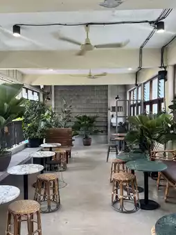 piccolo.vicolo cafe is a cafe renovated from an old building, maintaining a vintage vibe and decorated with plants. The cafe area is divided into just 3 floors.