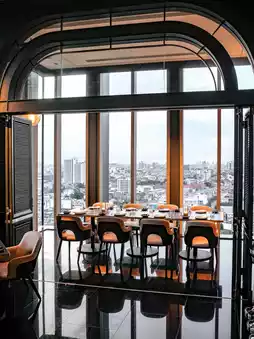 The restaurant is located on the 30th floor of the Grande Centre Point Surawong hotel.
