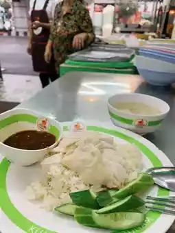 For lunch, I recommend Kwan Heng, known as the green Khao Man Gai (chicken rice).