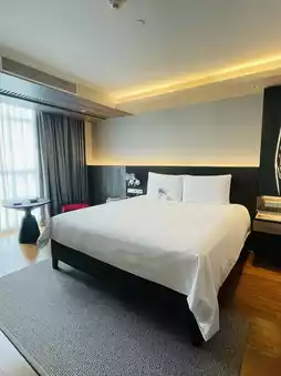 is another 5-star hotel located in the heart of Victory Monument and Phaya Thai. It is convenient for travel, accessible from either Phaya Thai Station Exit 4 or Victory Monument Station Exit 2, then a 700-meter walk. There are plenty of shopping and dining options available, making it suitable for those without a private car or those who want to relax. The breakfast is an International Breakfast with a wide variety to choose from, and there is a fitness center and swimming pool where you can work out to your heart's content.