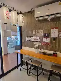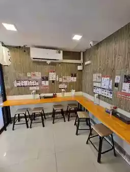 When I went, there were no customers yet, so no need to wait in line. But after a while, people started coming in. The seating inside is not very many, about 10 seats. If you come around lunchtime, you might have to take a chance. The staff is quick to serve. There is free drinking water and ice, as well as free pickled vegetables that help cut the richness very well.