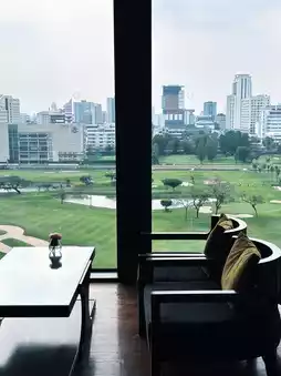 The hotel view is insanely stunning! Floor-to-ceiling windows directly overlook the Thailand Royal Club Racecourse and golf course ⛳️, with greenery and luxury all in sight. Sitting and zoning out feels like shooting a blockbuster~
