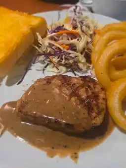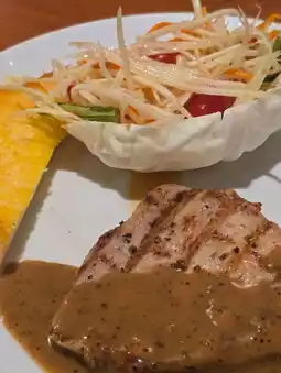 Highlights - Black pepper pork steak, BBQ pork ribs steak, papaya salad, mushroom soup