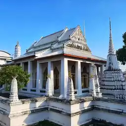 Royal Historic Temple Attractions in Bangkok, Thailand: Wat Nang Nong, a solemn white building, suitable for taking photos📸