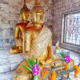 - In front of the ubosot is a small viharn (assembly hall). The front panel of the viharn is carved with a three-headed elephant, a symbol of the Rattanakosin era. Inside the viharn are two clay Buddha statues over 100 years old, locally known as Luang Pho Song Phi Nong (the two brother monks).