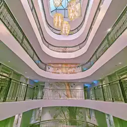 ✔️ Golden spiral staircase + birdcage chandelier: The same scene from the Chanel ad! Shoot from below, above, or straight on—any pose makes for stunning photos