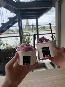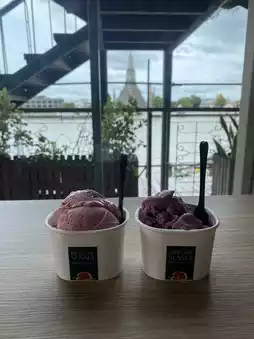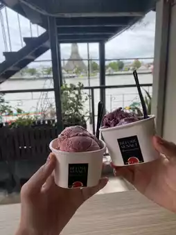 • The main view is from the large glass on the 2nd floor overlooking Wat Arun. Enjoying ice cream while soaking in the sunset feels amazing