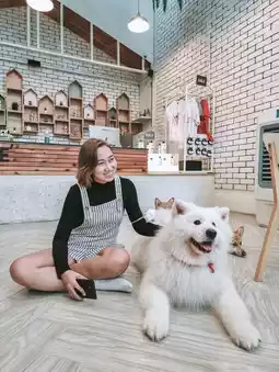 If you love dogs, this is your happy place! 🐶💖 At Dog In Town Cafe in Bangkok, the dogs are sooo cute and they just roam around freely, happily interacting with everyone. You can sit, chill, and cuddle with these adorable fluffy friends as they come over to you on their own – it’s such a heartwarming vibe! 🥹✨