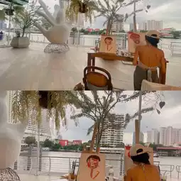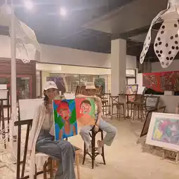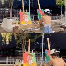 Located on the 1st floor of River City Bangkok, Soi Charoen Krung 24, by the Chao Phraya River, featuring simulated sand to make you feel like you're painting by the beach.