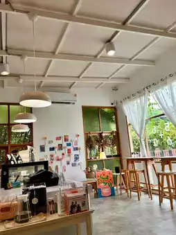 A cute, homey-style cafe with white, soothing, and warm Korean vibes. There are plenty of photo spots, every corner is great. Seating is available both indoor and outdoor, so you can choose as you like. The cafe offers both coffee & non-coffee drinks and homemade cakes freshly made by the owner, which are absolutely delicious. Most importantly, the prices are very affordable 💕💕