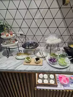 They've got Thai, Japanese, Korean, and Chinese food on the buffet. Plus, they serve mocktails, cocktails, and beers.