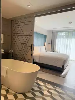Madi Paidi is a 5-star hotel in the Thonglor area. I've been there and really liked it. Today, I'm taking everyone on a staycation together at Madi Paidi Bangkok, Autograph Collection. It's a five-star hotel in Thonglor with a Thai-style presentation. When you enter the hotel, it feels very warm and welcoming. The rooms are beautiful, the service is excellent, and every corner is perfect for taking photos. Their restaurant, Ekkaluck, serves very delicious food. The hotel breakfast offers a wide variety of options, including special menus. The rooftop has a fitness center and a swimming pool, surrounded by greenery with a clear city view. The photo opportunities are amazing—content creators must not miss it!! If you want to change your work atmosphere, I highly recommend coming here. The staff provides excellent service. I really like the bed; it's soft and comfortable to sleep on. Not far from BTS.