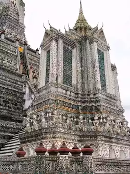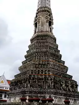 ✨️During the Rattanakosin era under King Rama II, a tall prang (spire) was constructed, which became the iconic symbol of Wat Arun. This prang stands 82 meters tall and is decorated with glazed tiles and seashells, creating beautiful patterns that shine in the sunlight🌞