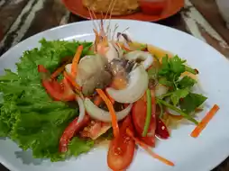 The seafood was fresh and generous, which really elevated the dish. We also ordered a few side dishes to share, and while they were good, the tom yum still stole the spotlight. The shop itself was small and humble, not the kind you’d expect such a culinary punch from—except for the huge lobster statue standing guard at the entrance, giving away a hint of what’s to come.