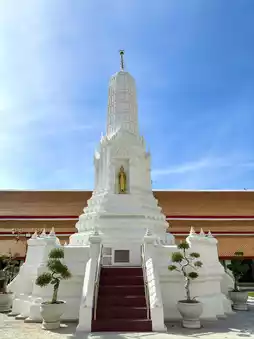 This temple and museum, where you can enjoy the trio of gold, white, and crimson at once, offers a calm photo spot different from the splendor around the Grand Palace.