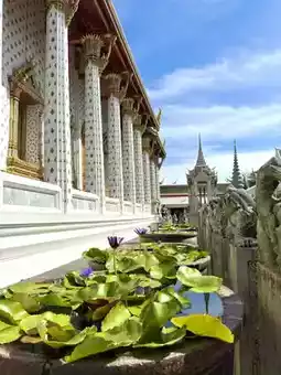 As its name means “dawn,” Wat Arun’s white and jade-colored ceramic mosaics shine in the morning sun, making it a must-visit spot. In addition to the impressive main tower, the serene White Hall, fresh lotus bowls, and river views offer diverse photo opportunities all in one place. For an investment of 200B, you can capture photos that last a lifetime, so get up early and head out.